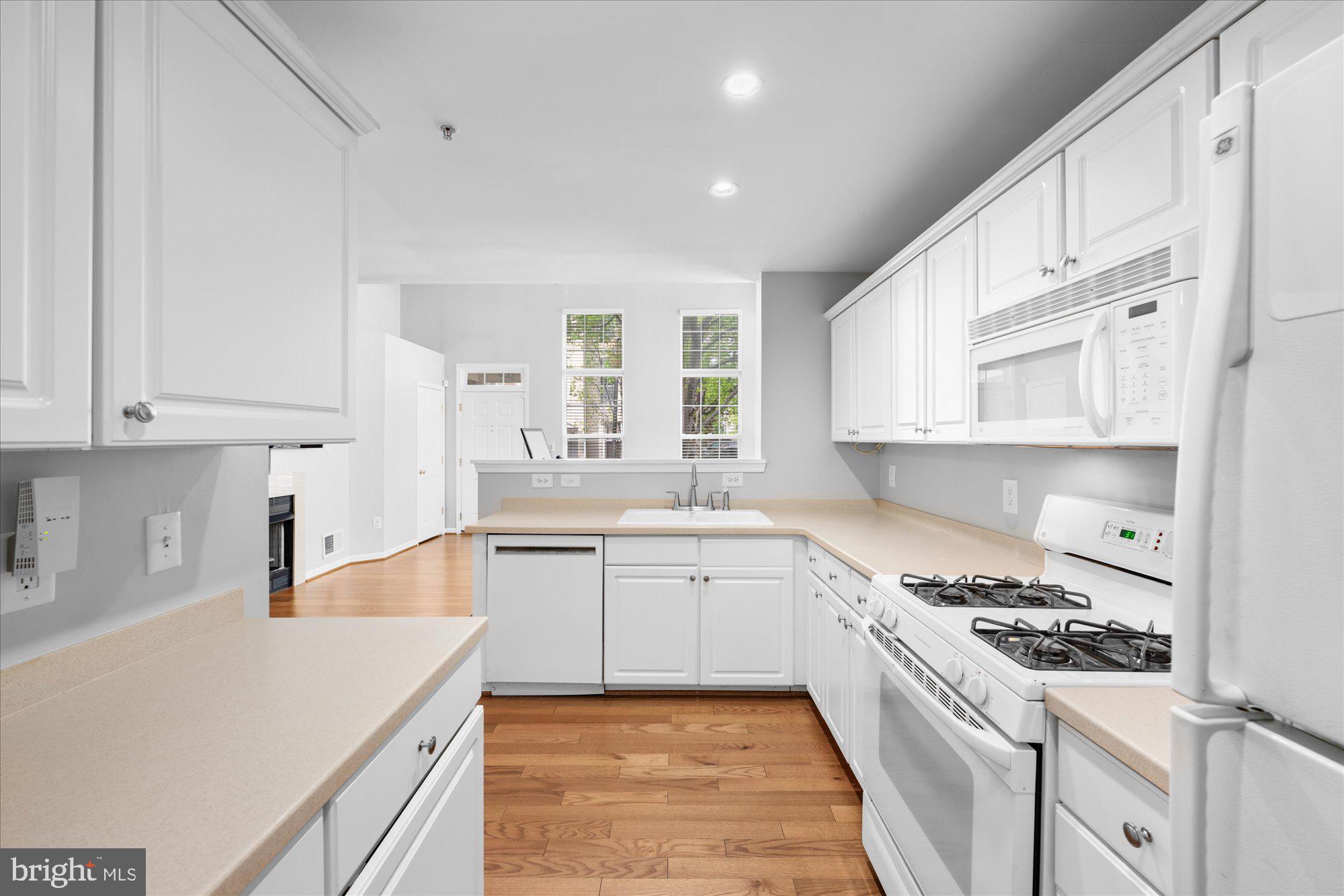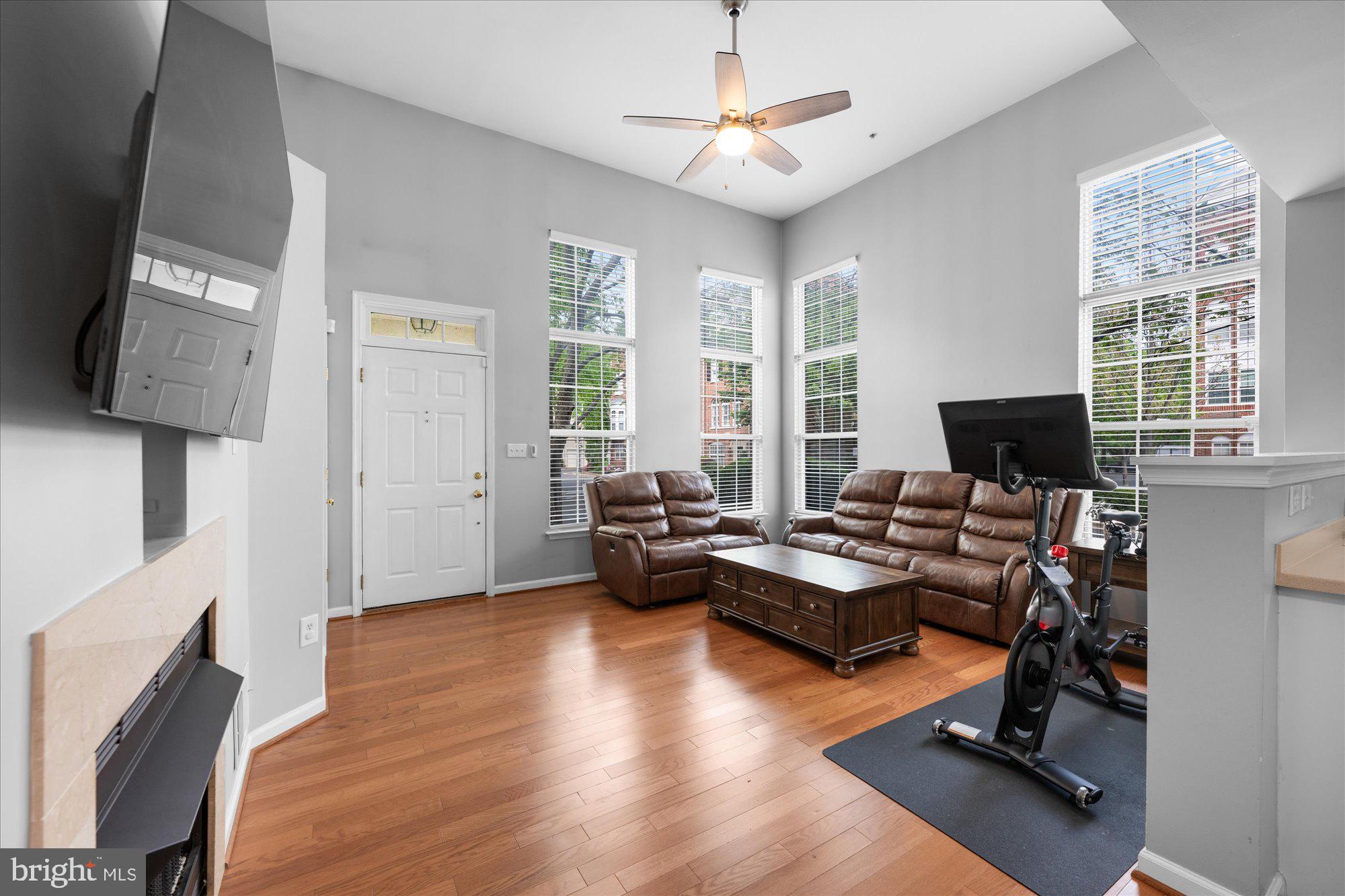 WOW! Stunning end/corner luxury townhome with attached garage located in the highly desirable Cameron Station community. This beautifully designed 2-bedroom, 2.5-bath home features an open floor plan with soaring floor-to-ceiling windows, filling the space with natural light. The living area boasts a cozy fireplace with a marble hearth, while the gourmet kitchen is perfect for entertaining or everyday cooking. The spacious master suite includes a luxurious en-suite bath, offering the perfect retreat at the end of the day.