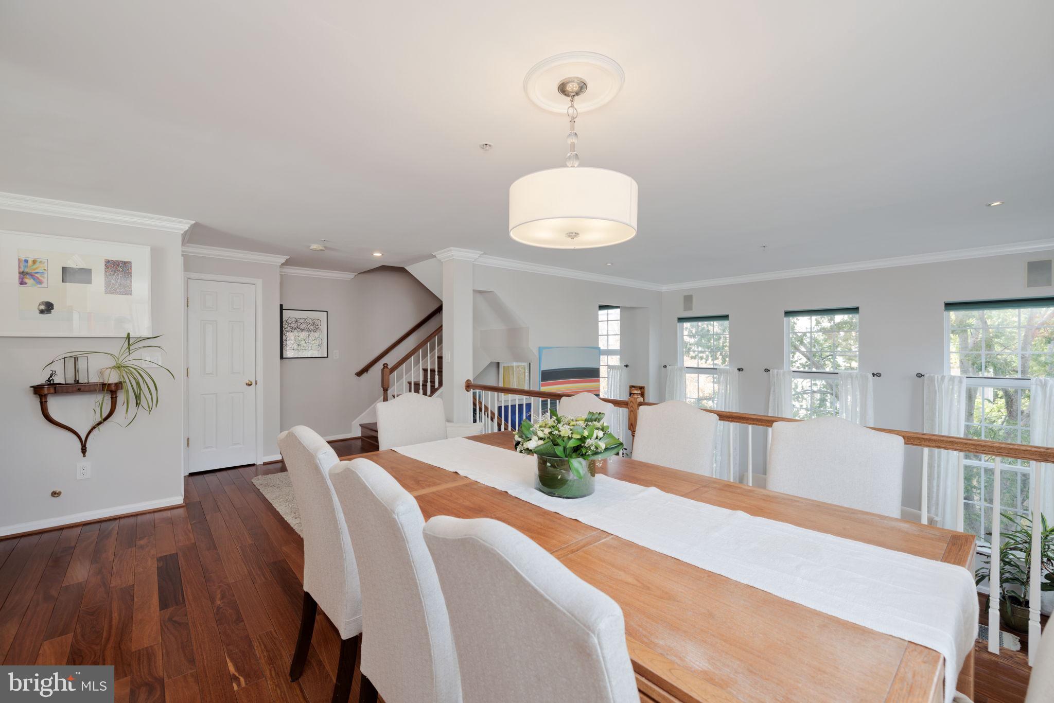 This splendid END unit awaits you in a premium location within the community. Gorgeous, open floor plan with soaring windows that infuse the home with sunshine. Gleaming hardwood flooring on all levels, spacious dining room overlooks dramatic sunken living room. Kitchen sparkles with SS appliances and granite countertops--enjoy a sizable breakfast area and family room w/fireplace of kitchen. From the kitchen you can also step out onto the rear private deck for your outside pleasure. Upstairs you will find three bedrooms and two full bathrooms. The huge primary bedroom offers a cathedral ceiling, floor to ceiling windows, two walk-in closets, as well as a luxurious full bathroom with a dual sink vanity, a walk-in shower, and a soaking tub. This home is ideally located close to major commuter routes for easy access to D.C. Additionally, it is in a prime location within Cameron Station near Ben Brenman Park, the Cameron Club facilities with gym and pool, and the Shoppes at Foxchase. This home comes with a one car rear garage as well as a driveway parking space!