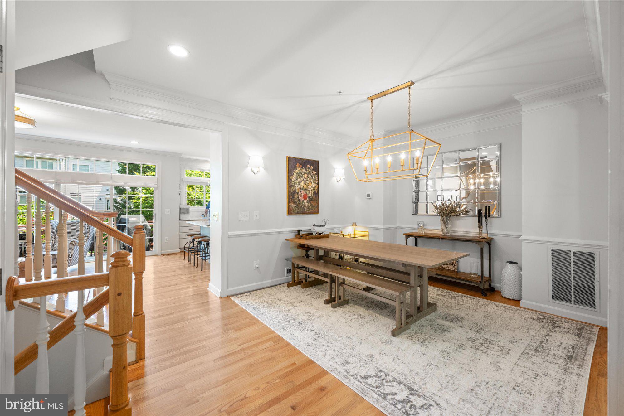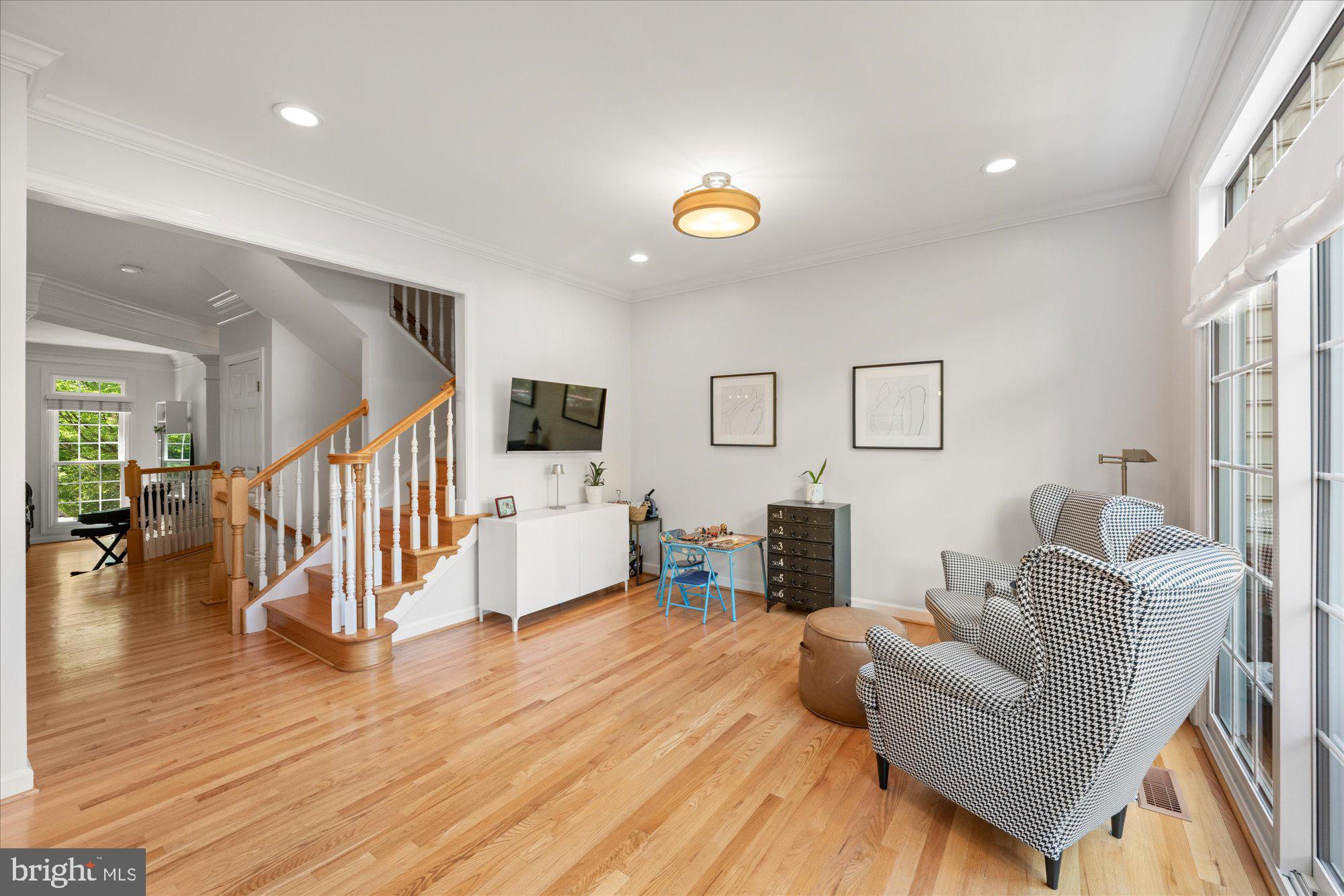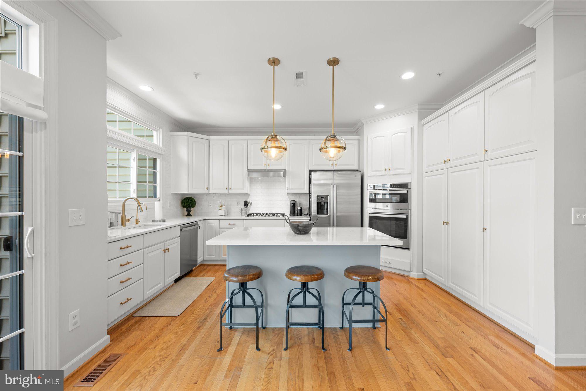 Welcome to this meticulously maintained and stunning four-level Randolph model, ideally located on a mature, tree-lined street in the heart of Cameron Station. This sun-drenched home features 4 spacious bedrooms with the flexible option for a 5th on the entry level, thanks to a separate office/den adjacent to a newly added full bath. Hardwood floors span three levels, and the beautifully remodeled, rarely available country kitchen showcases white cabinetry, quartz countertops, stainless steel appliances, and an open layout ideal for entertaining.