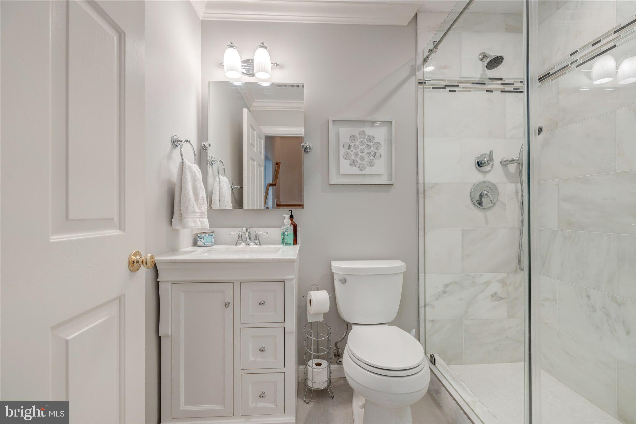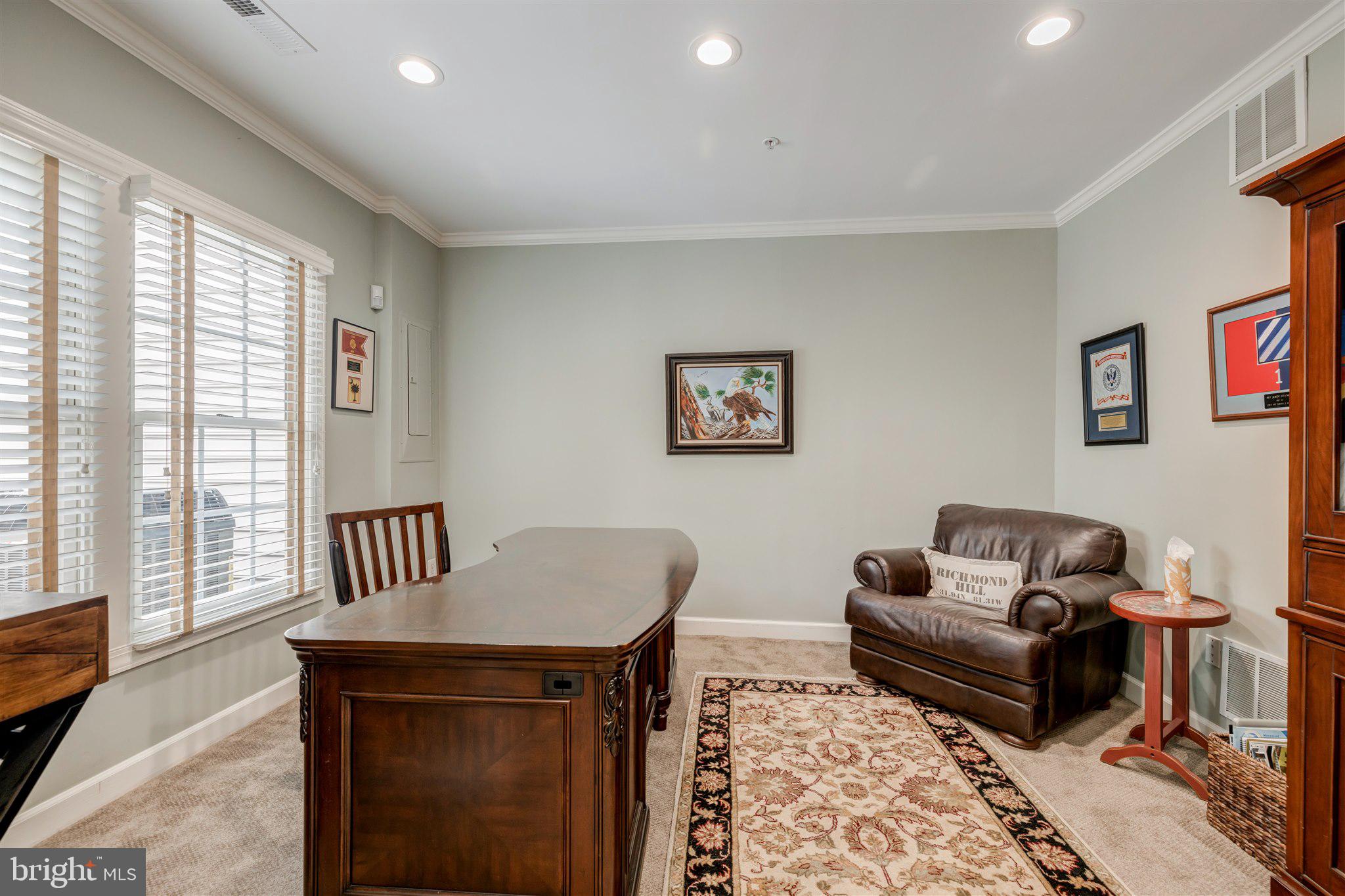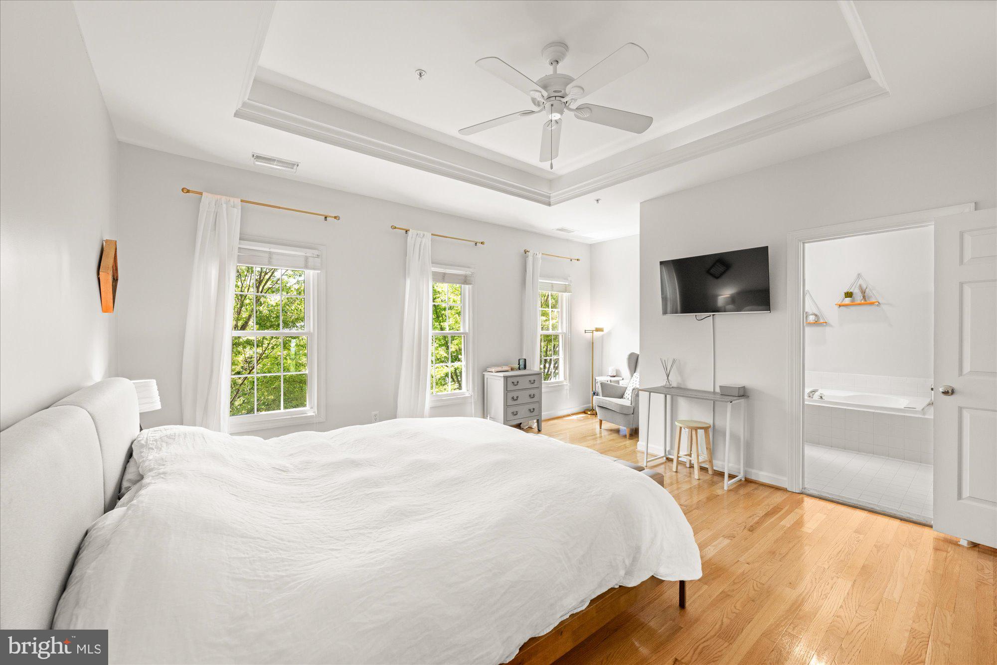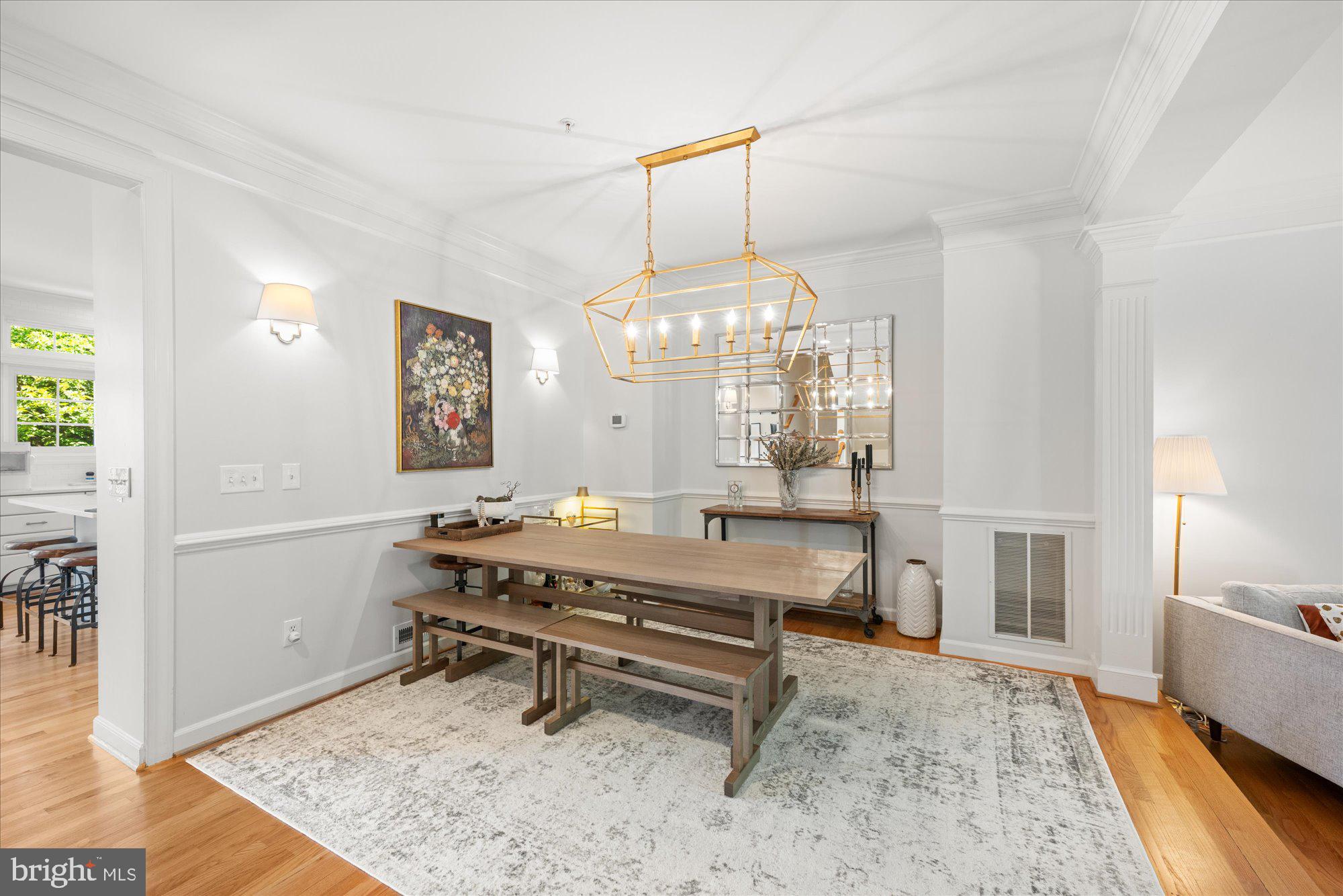 Welcome to this meticulously maintained and stunning four-level Randolph model, ideally located on a mature, tree-lined street in the heart of Cameron Station. This sun-drenched home features 4 spacious bedrooms with the flexible option for a 5th on the entry level, thanks to a separate office/den adjacent to a newly added full bath. Hardwood floors span three levels, and the beautifully remodeled, rarely available country kitchen showcases white cabinetry, quartz countertops, stainless steel appliances, and an open layout ideal for entertaining.