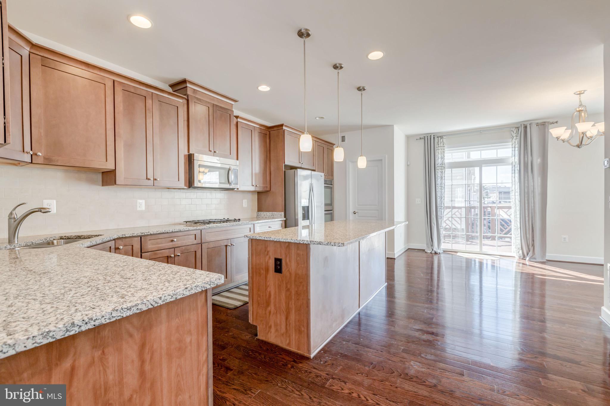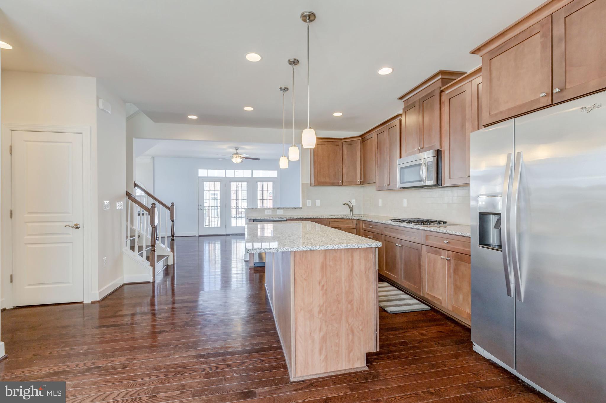 Stunning end unit townhouse with open floor plan, hardwood floors, generous kitchen island, ss appliances, granite counters, sizable master bedroom, great rec. room space, deck off kitchen, fenced backyard and 2 car garage with driveway big enough for another 2 vehicles. Close to shopping, restaurants,